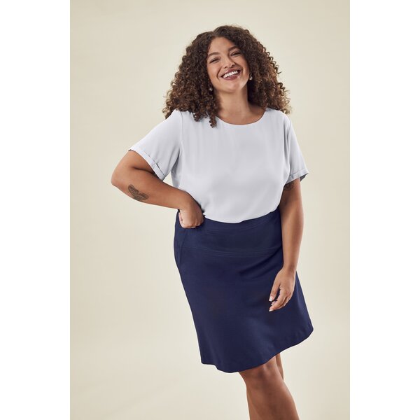 De blouse is gemaakt van een soepel vallende stof die comfortabel draagt en de figuur op een subtiele manier camoufleert. De korte mouwen met omslag geven het ontwerp een verzorgde en eigentijdse uitstraling, terwijl de ronde hals zorgt voor een rustige en representatieve look. Dankzij het gebruik van 100% polyester is de blouse licht, onderhoudsvriendelijk en geschikt voor dagelijks zakelijk gebruik.
