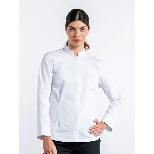 De dames koksbuis Sabor is een essentieel onderdeel van onze BSX-collectie. Met zijn minimalistische afwerking is deze koksbuis eenvoudig maar tegelijkertijd krachtig. De pasvorm sluit mooi aan en geeft een modieuze uitstraling. Deze veelzijdige koksbuis is een smaakvolle must-have voor in jouw keuken.