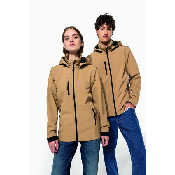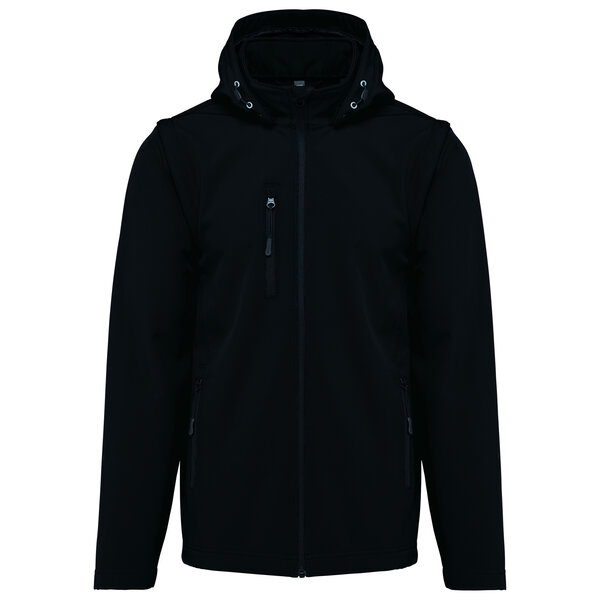 3-laags uniseks softshelljas met afneembare capuchon en mouwen